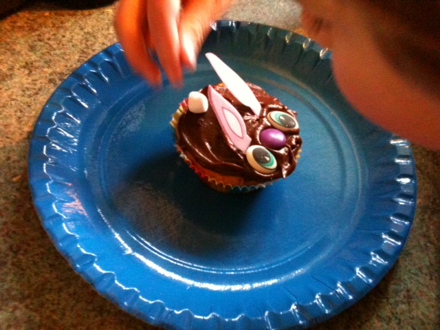 Within our parcel of goodies, we found some edible decorations to help make cupcakes look like bunnies, so we decided we’d have a go!