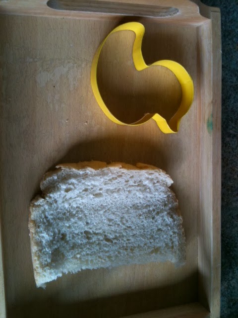 Take a slice of bread (we used a slightly stale home made slice!) and a cookie cutter.