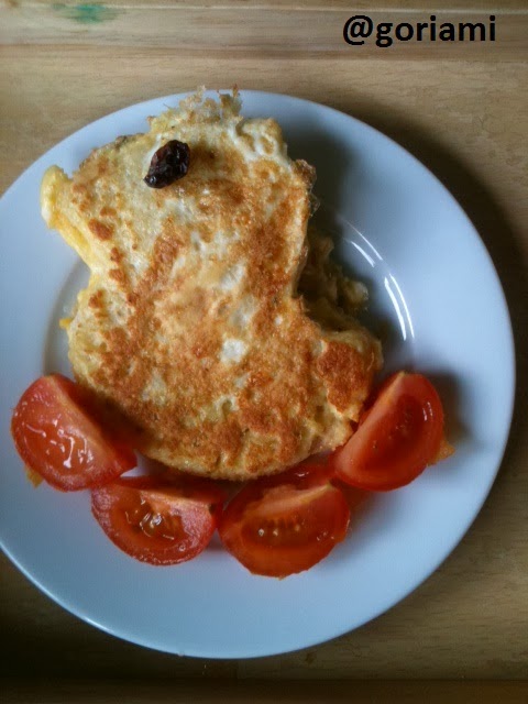 The grown up part! Heat a frying pan with a little olive oil (you won’t need much just a little spritz) once the pan is hot drop the eggy bread into the pan and fry it for a couple of minutes on each side until brown. Then pop it onto a plate, we added a raisin for an eye and some tomatoes to decorate!