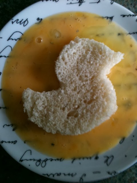 Use the cookie cutter to cut out the shape you want the eggy bread to be, ours is a duck (do you see what I did with the title of this post?!..haha!)