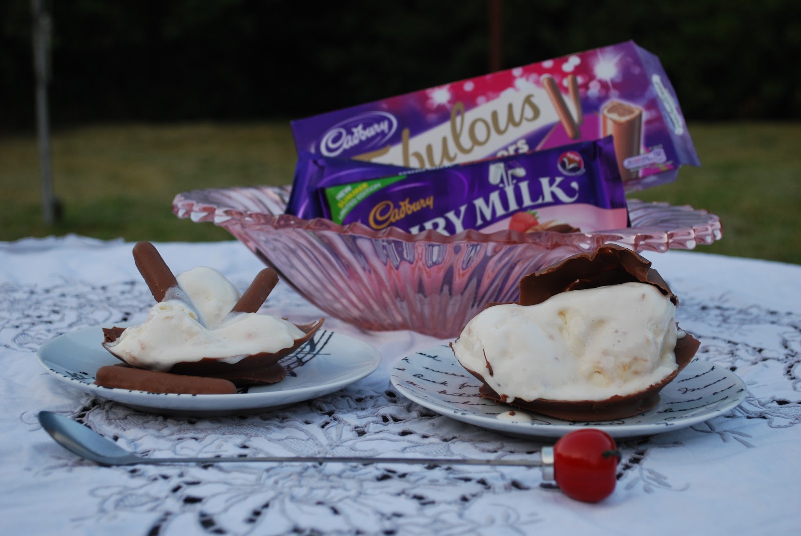 To make them I melted the Cadbury chocolate, and dipped an inflated balloon into the melted chocolate then popped it onto a piece of greaseproof paper to set. Once the chocolate was set, I burst the balloon and.. voila! I think I need more chocolate and a deeper bowl next time! However, they did look fabulous once served full of ice-cream (even if the ice-cream was melting faster than I could photograph it!).